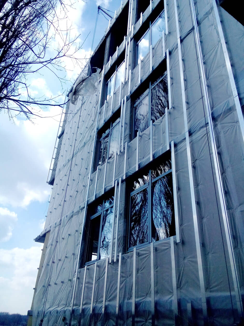 В сжатые сроки сделать проект и установку вентилируемых фасадов и панорамных окон для современного элитного здания на основании визуализации.