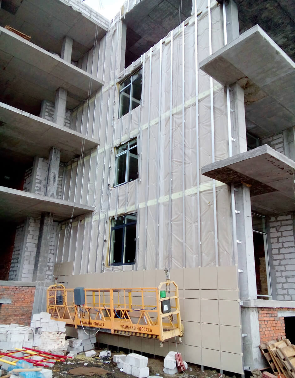 В качестве утеплителя используются негорючая базальтовая минеральная вата. Между облицовочными панелями и фасадом есть воздушная прослойка, которая необходима для препятствования образованию конденсата внутри конструкции, также это улучшает теплофизические свойства всего здания. Цвет фасада может быть любой.