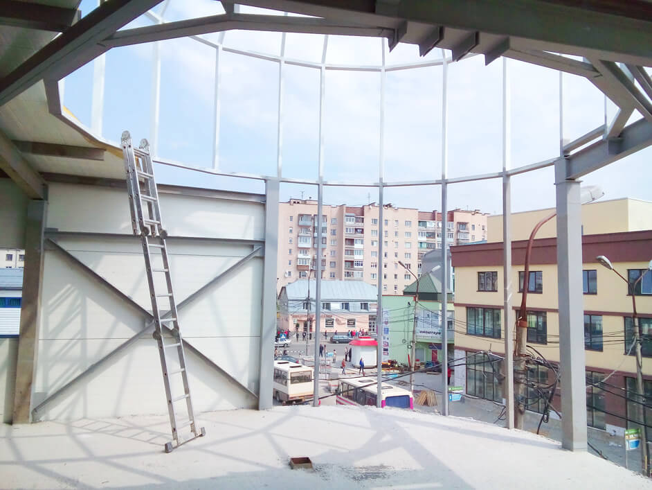 Он может состоять, как из самонесущего алюминиевого каркаса, так, и установлен на существующую металлоконструкцию, позволяет встраивать дверные, оконные, раздвижные системы.